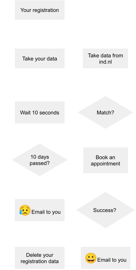IND Appointment Locator is created to help people to get earlier slot for an appointment at Immigration and Naturalisation Service in the Netherlands. Compared to the one you made manually.
